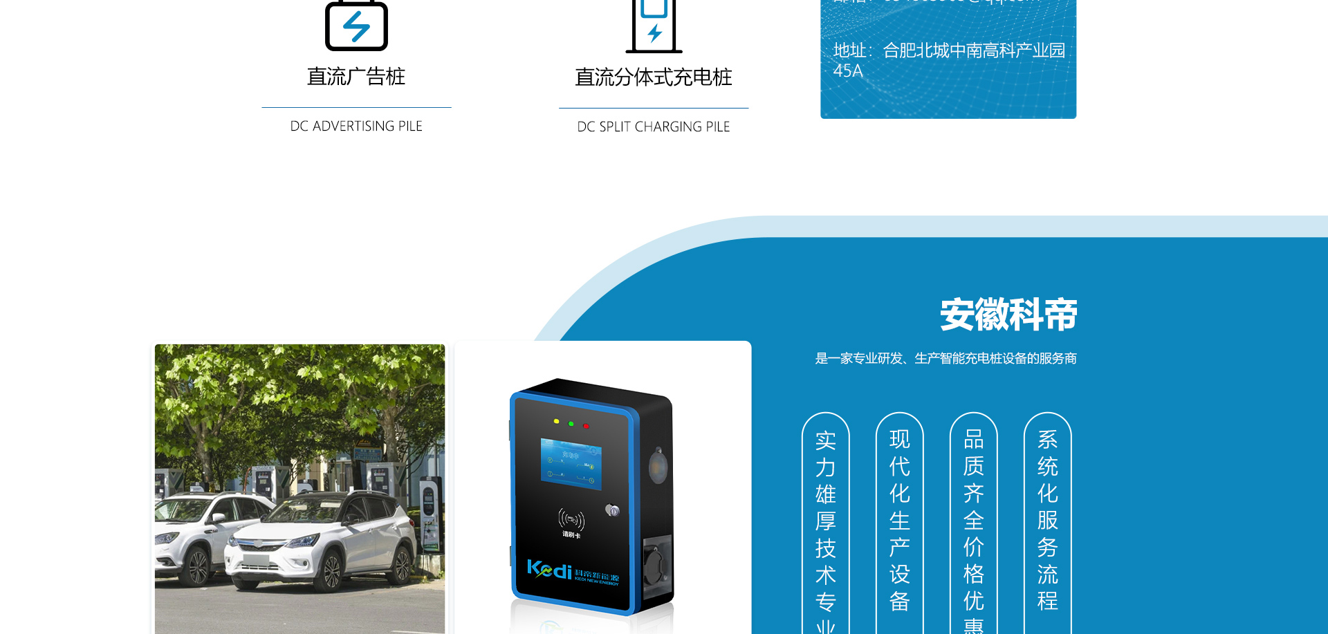 關于我們安徽科帝新能源科技有限公司坐落于安徽省會-合肥,是一家研發(fā)、生產智能充電樁設備,汽車充電站后臺監(jiān)控管理系統和生產高壓開關設備的企業.由專門的研發(fā)團隊、管理團隊按照現代化企業制度規(guī)范設立的有限責任公司。致力于為能源智能、安全的應用和節(jié)能減排提供整體的技術與產品解決方案??频奂邪l(fā)、設計、生產、銷售以及服務于一體,在電動汽車充電方案,充電設施建設和城市配電方面擁有廣泛的技術研究及經驗積累,為客戶提供安全、智能的充電設備及充電運營站建設一體化解決方案。并堅持以人為本、質量為先、顧客至上、不斷創(chuàng)新”的企業理念,為能源行業的發(fā)展、節(jié)能減排做出重大的貢獻。公司擁有豐富的產品種類,目前科帝已研發(fā)生產了三十多種產品,充電設備有直流一體式充電樁、直流分體式充電樁、直流廣告樁、交流廣告樁、廣告一體樁、壁掛交直流樁;等多種充電設備;每一款產品都是精心打造,力求為客戶提供優(yōu)越的用戶體驗。展望未來科帝將通過持續(xù)的自...